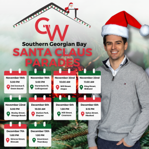 The holiday season is upon us, and Santa is making his way through the Southern Georgian Bay area once again. Each community has its own unique way of celebrating, and